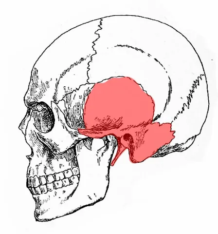 The temporal bone is a paired skull bone that forms part of the sides and base of the cranium, housing structures essential for hearing and balance. It protects the inner ear, provides attachment points for jaw and neck muscles, and contributes to the formation of the temporomandibular joint (TMJ). Its position also supports the passage of major blood vessels and nerves between the brain and face.