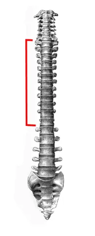 The term "thoracic" comes from the Greek thorax, meaning "chest," as these vertebrae form the upper part of the torso. "Vertebrae" is derived from the Latin vertere, meaning "to turn," emphasizing their role in movement.
