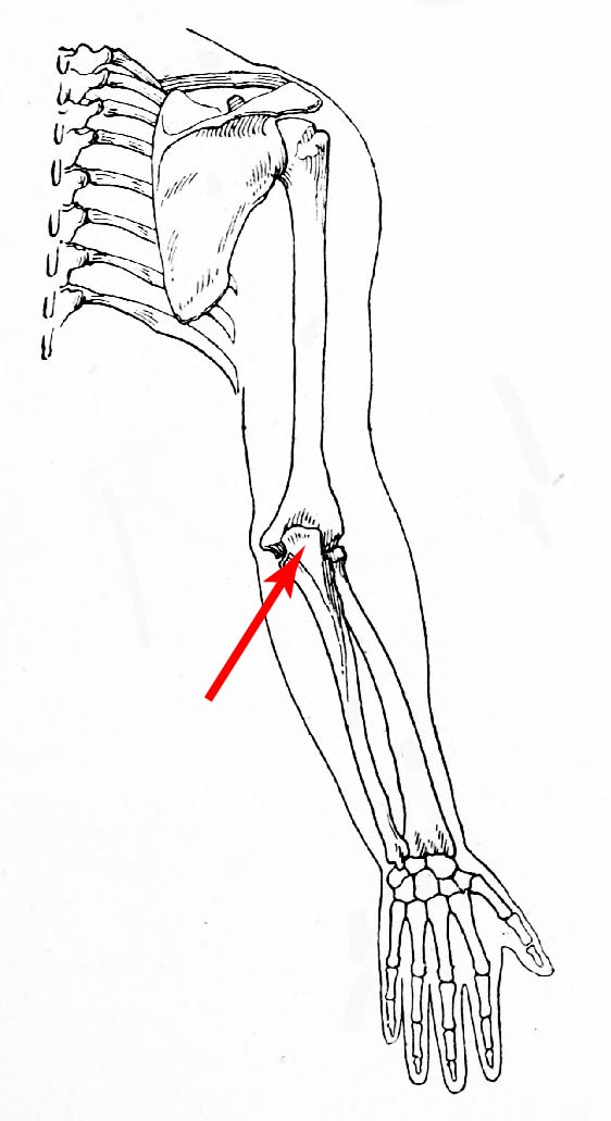 The olecranon is the prominent bony projection at the elbow that forms the tip of the ulna. It provides leverage for the triceps muscle to extend the forearm at the elbow joint. This sturdy hook-like process also protects the elbow joint and creates the characteristic point of the elbow.