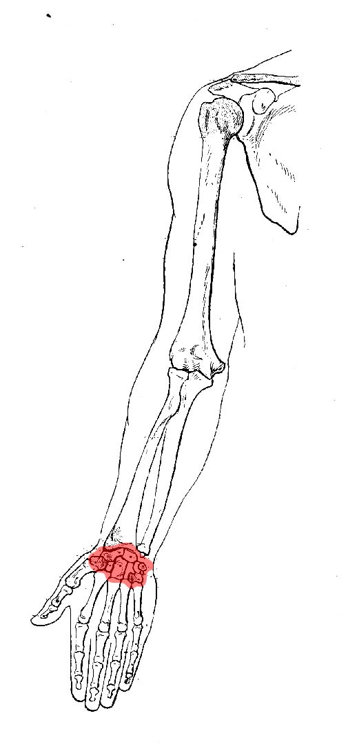 The carpals are eight small bones arranged in two rows that form the foundation of the wrist. They articulate with each other, the forearm bones, and the metacarpals to provide both stability and mobility. These bones create a tunnel for nerve and tendon passage while enabling complex wrist movements.