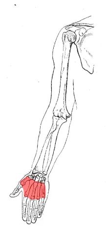 The name "metacarpal" comes from the Greek meta- (beyond) and karpos (wrist), meaning "beyond the wrist," as these bones extend from the wrist to the fingers.