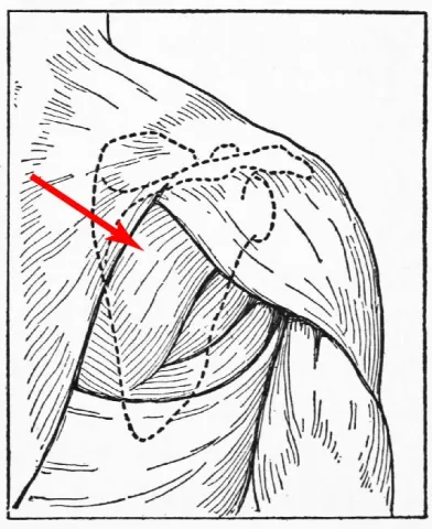The name "infraspinatus" comes from the Latin infra- (below) and spina (spine), referring to its position below the spine of the scapula.
