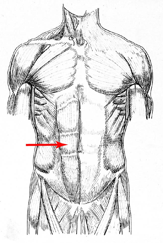 The name "rectus abdominus" comes from Latin, where "rectus" means "straight," and "abdominus" refers to the abdomen, indicating its straight orientation along the abdominal wall.